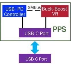 在傳統(tǒng)的USB-A和USB-B應(yīng)用中,輸入電壓是固定值,這給USB-C應(yīng)用帶來了新的挑戰(zhàn),因?yàn)閁SB-C端口還可以接受可變輸入電壓。解決辦法是可編程電源(PPS)功能,這種功能允許電源的輸出電壓和電流以20mV/50mA步進(jìn)編程和調(diào)節(jié),以優(yōu)化電源通路。如圖4所示,ISL95338降壓-升壓穩(wěn)壓器非常適合用于實(shí)現(xiàn)PPS,因?yàn)樵摲(wěn)壓器可以利用USB-PD控制器的SMBus通信,輸出可調(diào)的雙向電壓。