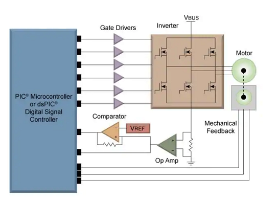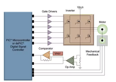 Microchip 無(wú)刷直流電機(jī)應(yīng)用還包括防鎖剎車系統(tǒng)、磁盤驅(qū)動(dòng)器伺服、油門控制等。