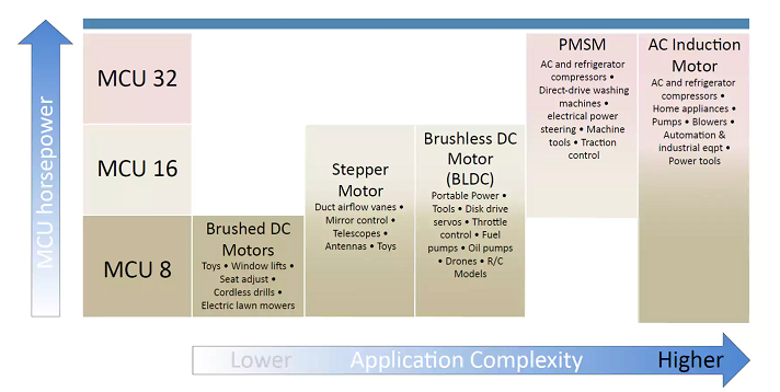 Microchip支持基于ARM®Cortex®M0,M4和M7的廣泛產(chǎn)品組合,以及基于32位MIPS的PIC32MK系列,為尋求使用DSP擴(kuò)展的32位浮點(diǎn)處理的客戶提供支持。單芯片電機(jī)控制和電機(jī)驅(qū)動(dòng)解決方案可實(shí)現(xiàn)更簡(jiǎn)單的設(shè)計(jì)并減少電路板空間。這些器件通常用作PIC®單片機(jī)和dsPIC®數(shù)字信號(hào)控制器的配套芯片。Microchip提供全系列的MCU,用于從低成本8位器件到高性能16位和32位器件的電機(jī)控制。這些器件包含創(chuàng)新的電機(jī)控制PWM外設(shè),包括互補(bǔ)波形和專用時(shí)基。高性能dsPIC®DSC內(nèi)核包含DSP指令,可以更加精確地控制需要恒定轉(zhuǎn)矩變速和面向磁場(chǎng)控制的應(yīng)用,以獲得更高的效率。