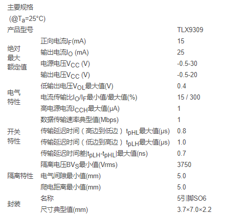 TLX9309采用符合RoHS標準的3.7mm x 7.0mm x 2.2mm 5引腳SO6封裝,工作溫度范圍為-40°C至+125°C。該器件已通過AEC-Q101認證,可用于汽車應用。