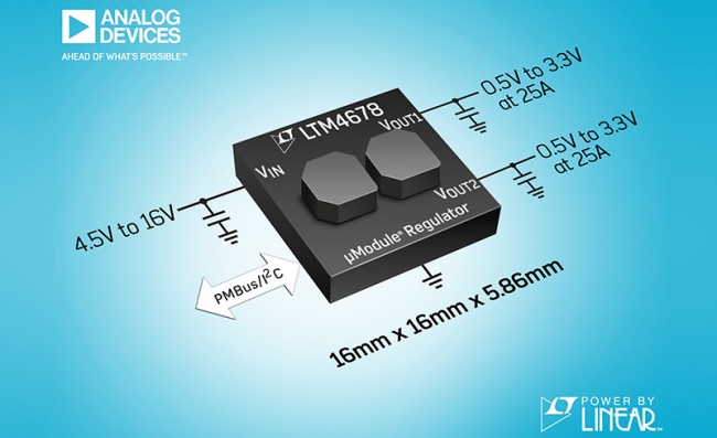 LTM4678 具有PMBus數(shù)字接口的雙通道25A或單通道50A降壓型µModule®穩(wěn)壓器