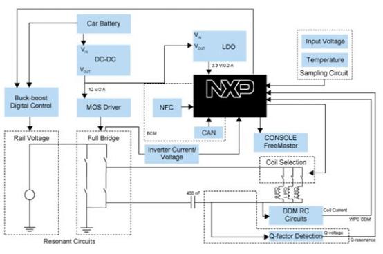 圖示1-應用于汽車平臺的基于NXP產(chǎn)品的無線充電解決方案的系統(tǒng)方案圖