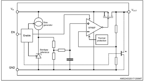 enable pin puts the STLQ020 in shutdown mode, reducing total current consumption to 1 nA.