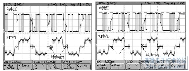 圖4:電磁轉(zhuǎn)矩方程式以及相電流與估算角度的實(shí)驗(yàn)波形。