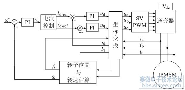 圖3:內(nèi)置式永磁同步電機(jī)(IPMSM)矢量控制系統(tǒng)框圖。