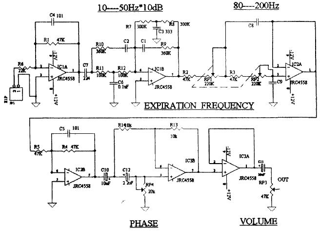 本文提供一種設(shè)計(jì)比較完善的超重低音前級(jí)信號(hào)處理部分電路,其中第一級(jí)為信號(hào)放大,根據(jù)需要可調(diào)整本級(jí)放大倍數(shù),第二級(jí)為50Hz以下超重低音的提升電路,這是一般低音炮電路所沒有的,第三級(jí)為頻率可調(diào)低通濾波器,調(diào)整范圍為80Hz-200Hz,第四級(jí)為隔離緩沖級(jí),第五級(jí)為0-180度相位連續(xù)調(diào)整電路。這也是一般低音炮所沒有的功能單元,很有特色,最后一級(jí)也屬于隔離緩沖級(jí),最后面為音量調(diào)整電位器。制作方而、其三塊雙運(yùn)放可采用一般4558即可,供電電源為穩(wěn)壓電源±12-18V,由于電流很小,可由功率放大級(jí)電源經(jīng)電阻降壓取得,以簡(jiǎn)化設(shè)計(jì)制作難度。對(duì)此電路感興趣者,可以根據(jù)需要予以適當(dāng)?shù)膭h減。