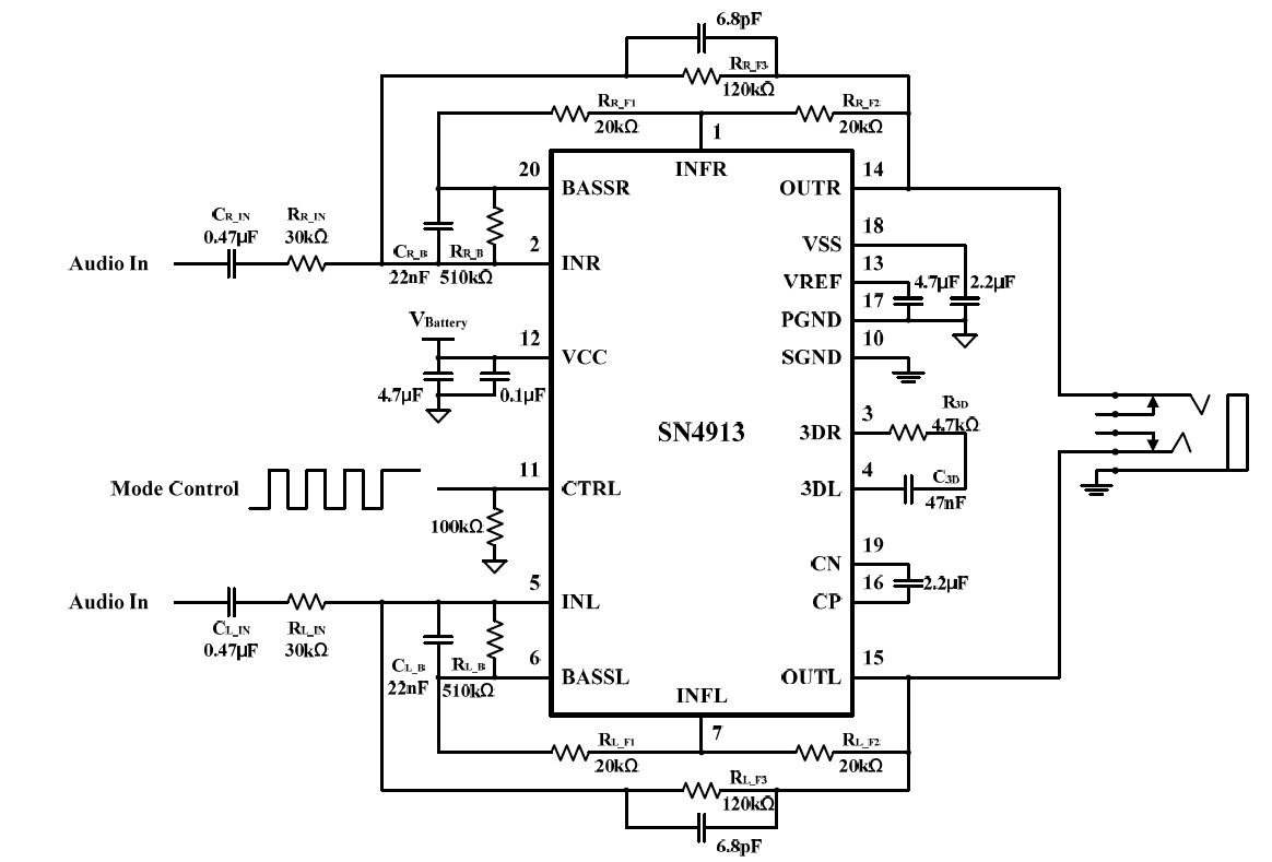 SN4913 3D環(huán)繞,低音增強(qiáng)高品質(zhì)立體聲耳機(jī)驅(qū)動(dòng)IC