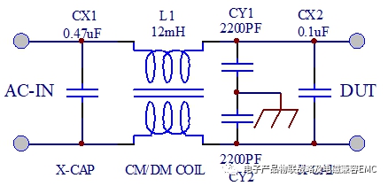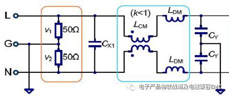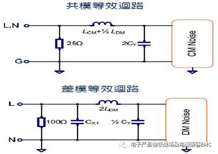 濾波器EMI-傳導的典型差模共模的等效設計圖如下: