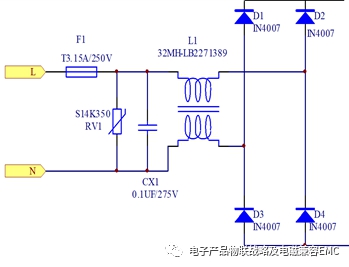 對于系統(tǒng)是Ⅱ類器具/結(jié)構(gòu)- 無接地措施的產(chǎn)品的EMI濾波器我的推薦設計: