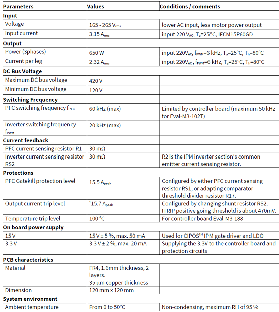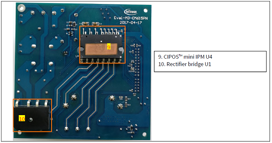 This evaluation board is designed to give Easy-to-use power stage based on the Infineon ’ s CIPOS™ MiniInteligent Power Module (IPM). The board is equipped with all assembly groups for sensorless field orientedcontrol (FOC). It provides a single-phase AC-connector, rectifier, a PFC inductor connector, Boost PFC and 3-phase output for connecting the motor. The power stage also contains emitter shunts for current sensing and avoltage divider for DC-link voltage measurement.