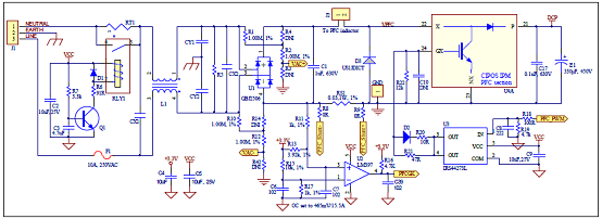 圖5.評估板EVAL-M3-CM615PN電路圖:EMI濾波器和PFC部分