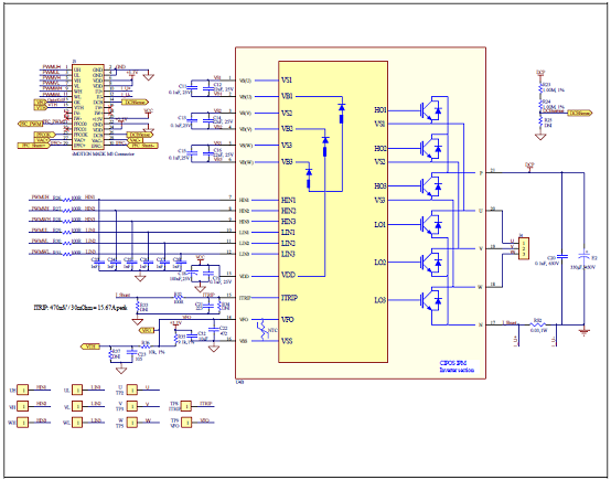 圖8.評估板EVAL-M3-CM615PN電路圖:逆變器部分