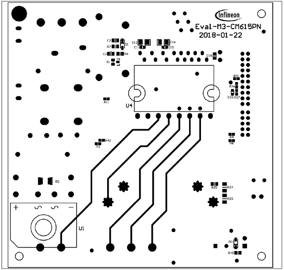 The Eval-M3-CM615PN evaluation board is available through regular Infineon distribution partners as well as onInfineon ’ s website. The features of this board are described in the main features chapter of this document,whereas the remaining paragraphs provide information to enable the customers to copy, modify and qualifythe design for production according to their own specific requirements.