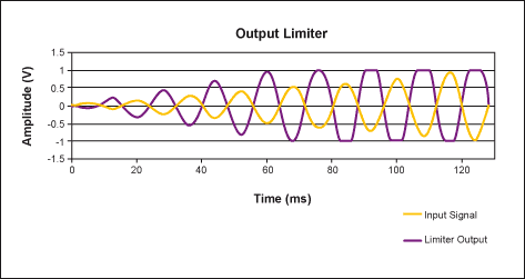 圖3. 輸出限幅器在過壓情況下造成輸出信號(hào)削波,因而產(chǎn)生聽得到的失真。