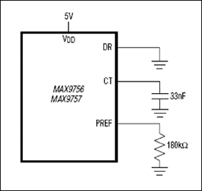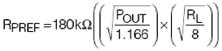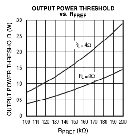 連接于PREF和地之間的一只外部電阻設(shè)定了鉗制揚(yáng)聲器輸出的門限(圖7)。公式1給出了這個(gè)電阻值和最大預(yù)期輸出功率及揚(yáng)聲器阻抗的關(guān)系。