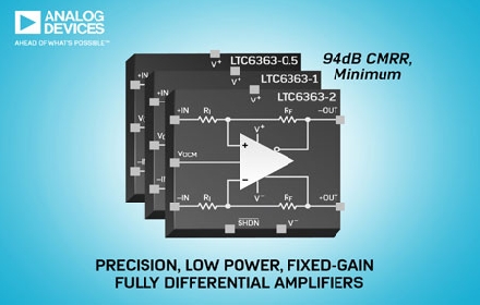 Analog Devices, Inc.(ADI)宣布推出LTC6363-0.5、LTC6363-1和LTC6363-2精準(zhǔn)、固定增益、全差分放大器,這是備受認(rèn)可的 LTC6363 放大器之超精準(zhǔn)固定增益版本系列。新產(chǎn)品可提供 0.5、1 和 2V/V 的固定增益,能夠靈活將輸入調(diào)節(jié)至 ADC 滿量程。