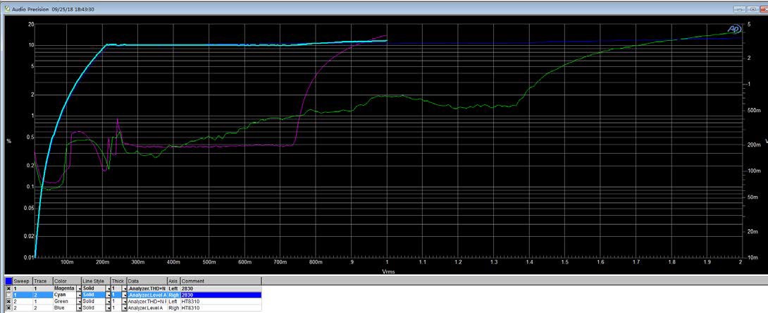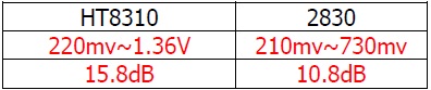 2. 防破音有效控制范圍HT8310 比FT2830 約大5dB。