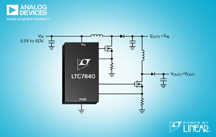 LTC7840 60V、雙路、兩相升壓控制器能夠級(jí)聯(lián)輸出以調(diào)節(jié)超過(guò)200V電壓