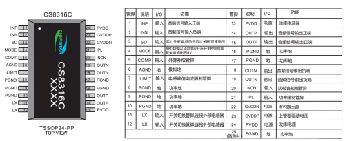 CS8316(雙節(jié)鋰電池7.4V供電內(nèi)置升壓、防破音、AB/D切換、恒定單聲道25W音頻功放IC)