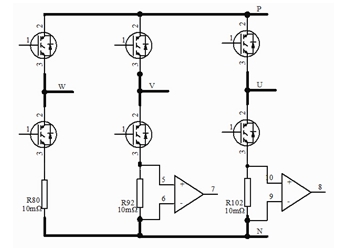 對(duì)于320V供電空調(diào)壓縮機(jī),電機(jī)內(nèi)阻0.2Ω,如果采樣電阻合適,則對(duì)回路沒(méi)有什么影響。如果采樣電阻的阻值過(guò)大,會(huì)引起電壓的損耗,使能量效率變低,較大的阻值會(huì)使負(fù)載電壓發(fā)生偏移,產(chǎn)生電磁干擾,產(chǎn)生系統(tǒng)對(duì)噪聲敏感的問(wèn)題。當(dāng)確定好阻值后還需要考慮電阻的穩(wěn)定性能和阻值誤差。