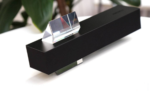 現(xiàn)在市面上已經有不少通過磁力實現(xiàn)的懸浮音箱,不過Gravity的“懸浮”還是有所不同的。結構上,Gravity由長條狀的腔體和透明棱鏡(PMMA有機玻璃材質)組成,正是這塊棱鏡的加入為它增加了“懸浮”的視覺效果。