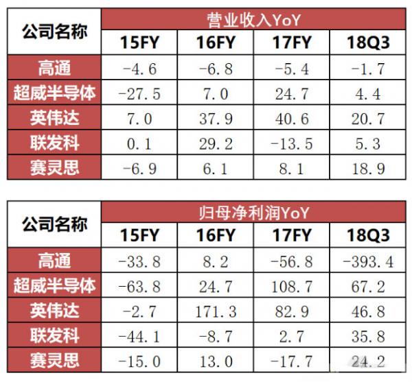 那全球半導(dǎo)體到底有多差呢?我們來(lái)看看全球十大半導(dǎo)體巨頭近4年的業(yè)績(jī)?cè)鏊偾闆r: