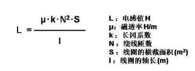 電感值的計算公式如下所示。卷數(shù)越多,磁場越強。同時,橫截面積變大,或改變磁芯都能夠使磁場增強。