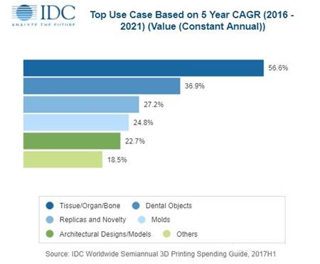 IDC分析師認(rèn)為,到2022年,75%的新3D打印機(jī)將支持凝膠和橡膠等特性的新材料,從而帶來(lái)20億美元與3D打印產(chǎn)品相關(guān)的新支出。