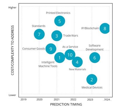 IDC 3D打印預(yù)測(cè)已根據(jù)不同主題進(jìn)行分類,如下圖所示; 預(yù)測(cè)也編號(hào)用于識(shí)別。