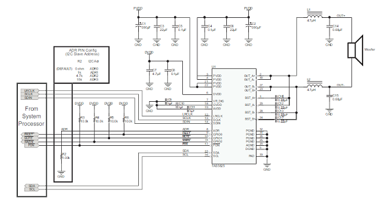 圖3.TAS5825M超低音(PBTL)應(yīng)用電路圖