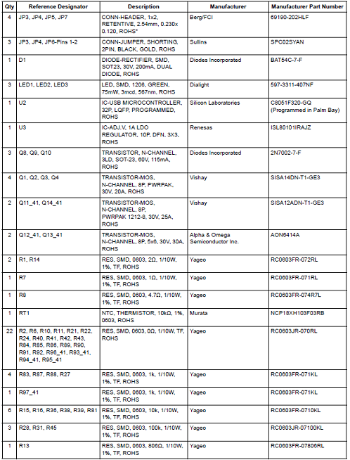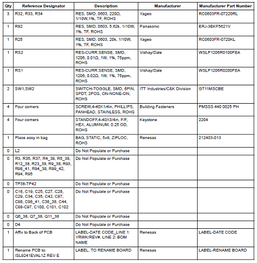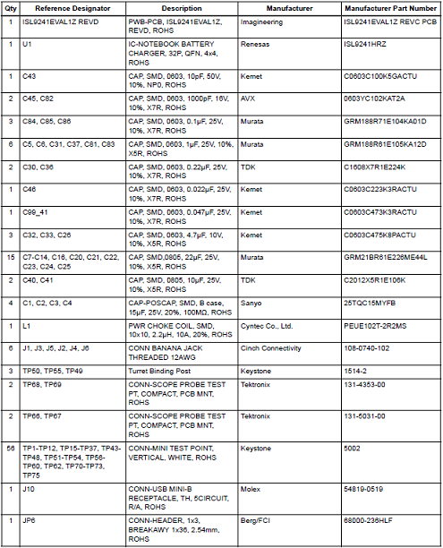評估板ISL9241EVAL1Z材料清單: