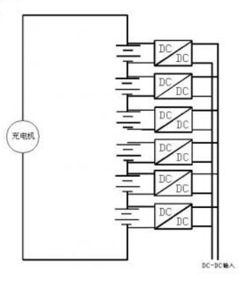 下圖為當(dāng)時(shí)采用的均衡電路的示意圖,DC-DC 輸入母線既可以是電池電壓,也可以是別的模塊提供的直流輸入,根據(jù)需要靈活配置。