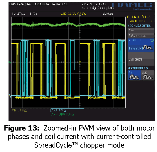 圖10和圖11顯示 電壓控制模式的Stealthchop 和電流控制模式的SpreadCycle