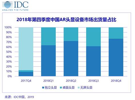 2018年,在國(guó)內(nèi)政策環(huán)境的積極引導(dǎo)下, AR頭顯市場(chǎng)同樣獲得了深入的發(fā)展。盡管隨著Mirage AR頭顯在國(guó)內(nèi)市場(chǎng)的遇冷,AR無(wú)屏頭顯市場(chǎng)迅速衰落,但桌面頭顯以及獨(dú)立頭顯市場(chǎng)都保持了穩(wěn)定增長(zhǎng)的趨勢(shì),相比去年增幅分別達(dá)到199.2%以及152.1%,同時(shí)頭部廠商的市場(chǎng)地位得到進(jìn)一步穩(wěn)固。目前AR頭顯設(shè)備在消費(fèi)端市場(chǎng)遲遲還未能迎來(lái)突破口,但是在醫(yī)療、教育以及制造業(yè)等商用垂直領(lǐng)域的應(yīng)用場(chǎng)景已經(jīng)得到大規(guī)模拓展,未來(lái)AR頭顯市場(chǎng)仍將重點(diǎn)布局在商業(yè)應(yīng)用領(lǐng)域,但行業(yè)的持續(xù)發(fā)展還需要更多的內(nèi)容開發(fā)者加入到產(chǎn)業(yè)生態(tài)中,促進(jìn)更加高效便捷的內(nèi)容平臺(tái)的建立。