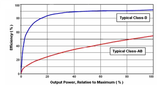 圖 2:AB類與D類效率