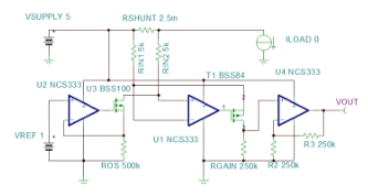 運(yùn)放必須是軌對(duì)軌輸入,或有一個(gè)包括正供電軌的共模電壓范圍。零漂移運(yùn)算放大器可實(shí)現(xiàn)最小偏移量。但請(qǐng)記住,即使使用零漂移軌對(duì)軌運(yùn)放,在較高的共模范圍內(nèi)運(yùn)行通常不利于實(shí)現(xiàn)最低偏移。