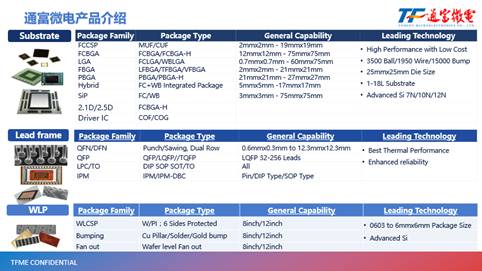 通富微電是我國集成電路封裝測試龍頭企業(yè),產(chǎn)品廣泛應(yīng)用于智能終端、CPU、服務(wù)器、面板驅(qū)動器、存儲器、物聯(lián)網(wǎng)、人工智能、汽車電子等熱點(diǎn)領(lǐng)域 。目前,通富微電已成為中國集成電路封裝測試TOP2企業(yè)、半導(dǎo)體集團(tuán)化跨國公司、全球封測行業(yè)領(lǐng)先企業(yè)。在本次展會上,將帶來如下展品。