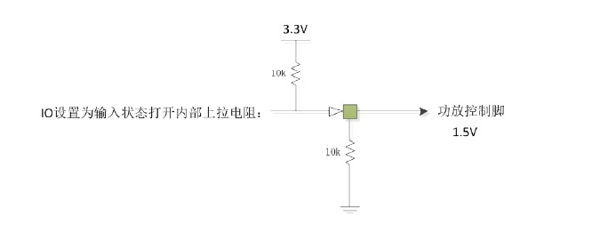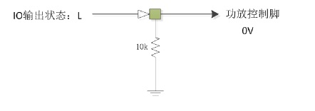 現在主控IO口很少,IO口設置成輸入狀態(tài)的時候使能內部上拉電阻(比如10k),那么一個IO口可以做到有三種狀態(tài)。靜音關斷,D類,AB類,一個IO口就可以搞定。外圍只接一個下拉電阻,等效電路如下: