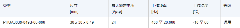 TDK株式會社(東證:6762)開發(fā)了一款超薄壓電揚聲器—PiezoListen™,與現有的任何壓電揚聲器相比,該揚聲器不僅可以在更寬的頻率范圍內發(fā)出聲音,還可以在低頻率范圍內擁有更大的輸出*。該產品的工作頻率范圍為400至20000Hz,即使在24VP-P或更低的低電壓下,也能實現80dB的高聲壓;最大輸出功率為34W,阻抗為2至100Ω。PiezoListen厚度僅為0.49mm,是最薄的壓電揚聲器之一。TDK公司的專利積層技術和材料技術使纖薄、高位移壓電元件的開發(fā)成為可能。通用級別產品(PHUA3030-049B-00-000)的樣品將于2019年6月開始提供。