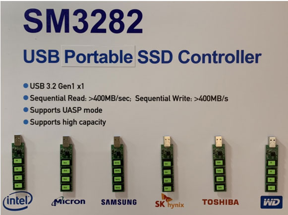 目前巿場上可攜式SSD均采用橋接芯片設(shè)計,將原SATA或PCIe接口轉(zhuǎn)接為USB接口。SM3282為單芯片USB 3.2 Gen 1接口設(shè)計,提供完整的單芯片硬件及軟件解決方案,并支持UASP協(xié)議。此外,SM3282采用雙通道設(shè)計,支持最新一代96層QLC NAND,其容量最高可達2TB;同時,由于采用低功耗設(shè)計,毋須外部電源IC即可自行運作,降低物料(BOM)成本。