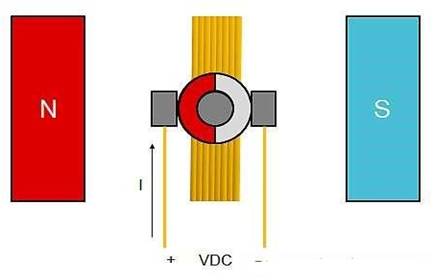 有刷直流電機(jī)實(shí)行機(jī)械換向,這意味著電機(jī)的物理結(jié)構(gòu)實(shí)際上會(huì)導(dǎo)致電機(jī)換向。電刷與換向器接觸,隨著電機(jī)旋轉(zhuǎn),電流通過電機(jī)線圈,將會(huì)使極性交替。這允許定子永磁體產(chǎn)生的磁場(chǎng),始終與轉(zhuǎn)子產(chǎn)生的磁場(chǎng)相反,因而總能產(chǎn)生力。機(jī)械換向表示有刷直流電機(jī)只需在電機(jī)繞組上施加一些電壓即可旋轉(zhuǎn),如圖 1所示。