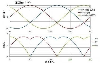 另外一種方法是為電機(jī)施加更平滑的電流波形,這稱之為“正弦波”控制或“180度”。與梯形控制相比,當(dāng)與合適的電機(jī)配合使用時(shí),這種控制方法能夠提高效率,降低噪音。缺點(diǎn)是要實(shí)現(xiàn)平滑電壓和電流分布,復(fù)雜性比較高,通常需要更準(zhǔn)確的脈寬調(diào)制(PWM)計(jì)時(shí)器。