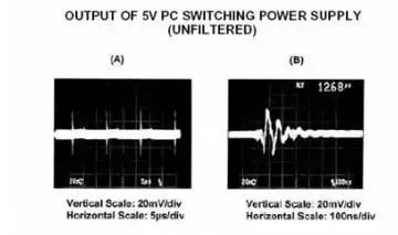 開關電源是一個很嚴重的噪聲源,下圖是典型的開關電源輸出端的電壓波形: