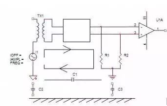通過空間磁場耦合到具有一定環(huán)路面積的信號回路或地線環(huán)中,造成對信號的影響。另外來自開關電源或市電網(wǎng)絡的高頻干擾可能通過空間雜散電容直接耦合到信號回路。