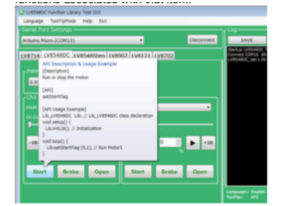 插件電機驅(qū)動模塊提供預(yù)先設(shè)計的硬件作為模塊,基于開放源碼架構(gòu),可隨時進行定制。主機PC與Arduino MICRO* 1之間的USB聯(lián)接使DC電機能使用串行通信控制。開發(fā)環(huán)境包括運行Arduino IDE 1.8.4的Windows PC、基板和AC適配器,輸出電壓4V至16V,輸出電流約2A。該軟件包括一個應(yīng)用編程接口(API)庫和對設(shè)計人員最重要的強大的圖形用戶接口(GUI),能自動生成Arduino代碼,可導(dǎo)出為Arduino Sketch (.ino)文件。此代碼也可以與Arduino IDE一起使用。