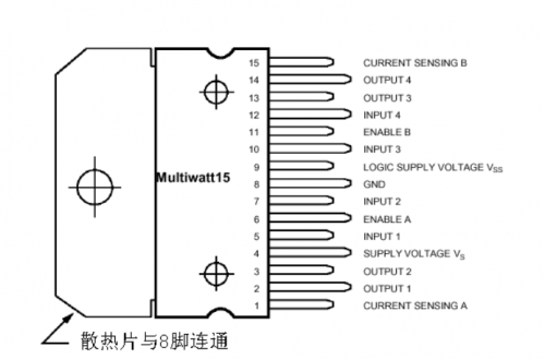 這個芯片是很簡單,很便宜,而且很容易買到,一個芯片里面就集成了2路的H橋電路,還帶PWM控制和電流采集。但是它有2個嚴重的缺點: