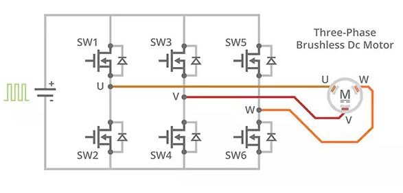 通過(guò)采用這種標(biāo)準(zhǔn)電機(jī)換向序列,電機(jī)控制器即可利用高頻率脈寬調(diào)制 (PWM) 信號(hào),有效降低電機(jī)承受的平均電壓,從而改變電機(jī)速度。除此之外,這種設(shè)置通過(guò)讓一個(gè)電壓源用于各種各樣的電機(jī),大大提升了設(shè)計(jì)靈活性,即使直流電壓源大大高出電機(jī)額定電壓的情況也不例外。為了讓此系統(tǒng)保持相對(duì)于有刷技術(shù)的效率優(yōu)勢(shì),在電機(jī)和控制器之間需要安裝非常嚴(yán)格的控制回路。