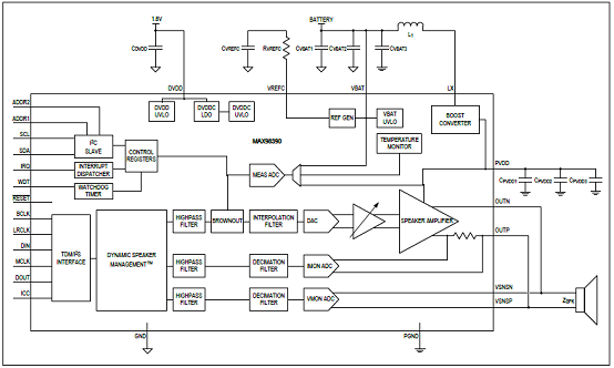 MAX98390集成動(dòng)態(tài)揚(yáng)聲器管理D類放大器解決方案