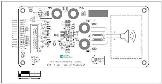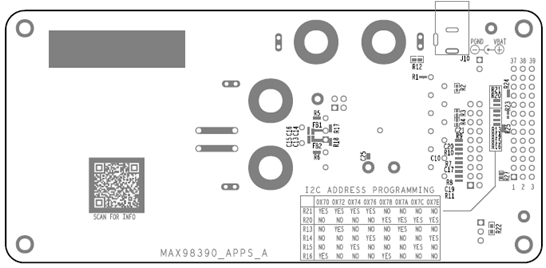 圖6.評(píng)估系統(tǒng)MAX98390 EVS PCB設(shè)計(jì)圖:頂層元件放置圖(絲印圖)