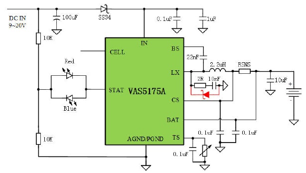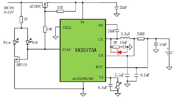 2A開關(guān)單節(jié)/兩節(jié)鋰電充電管理IC-VAS5175A應(yīng)用設(shè)計(jì)注意事項(xiàng)